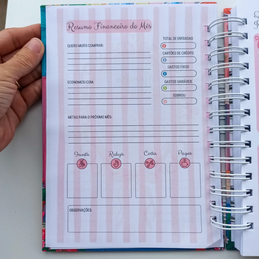 ✔ Divisórias mensais com resumo financeiro do mês.