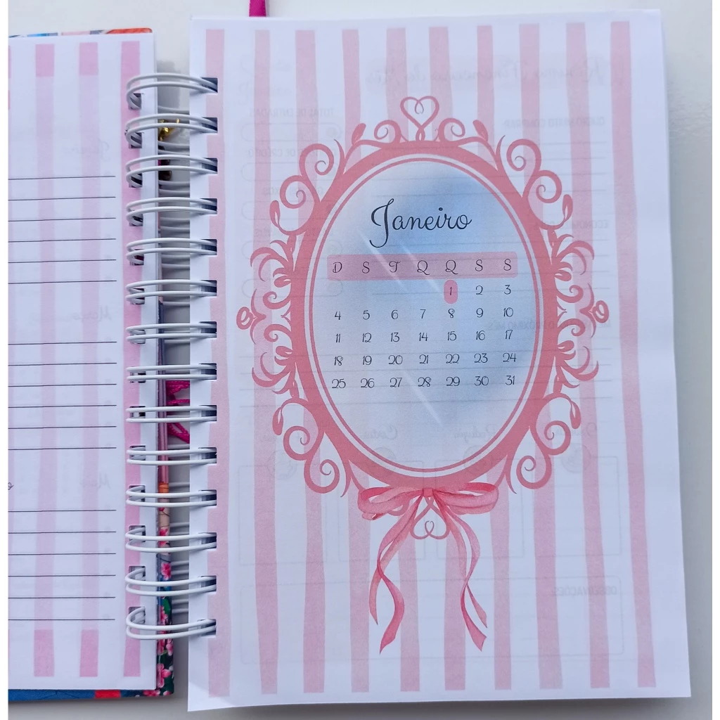 Sua rotina em 2026 merece muito mais que uma simples agenda! Com acabamento PREMIUM EM GLITTER nas capas e detalhes delicados em rosa, essa agenda foi feita para mulheres que amam unir organização e fofura!!