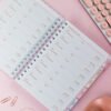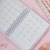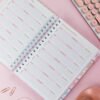 O planner vem no tamanho A5 (15x21cm), super prático, com 10 capas lindas para você escolher a que combina com seu estilo. E o melhor: ele é completíssimo — sério, não falta nada!