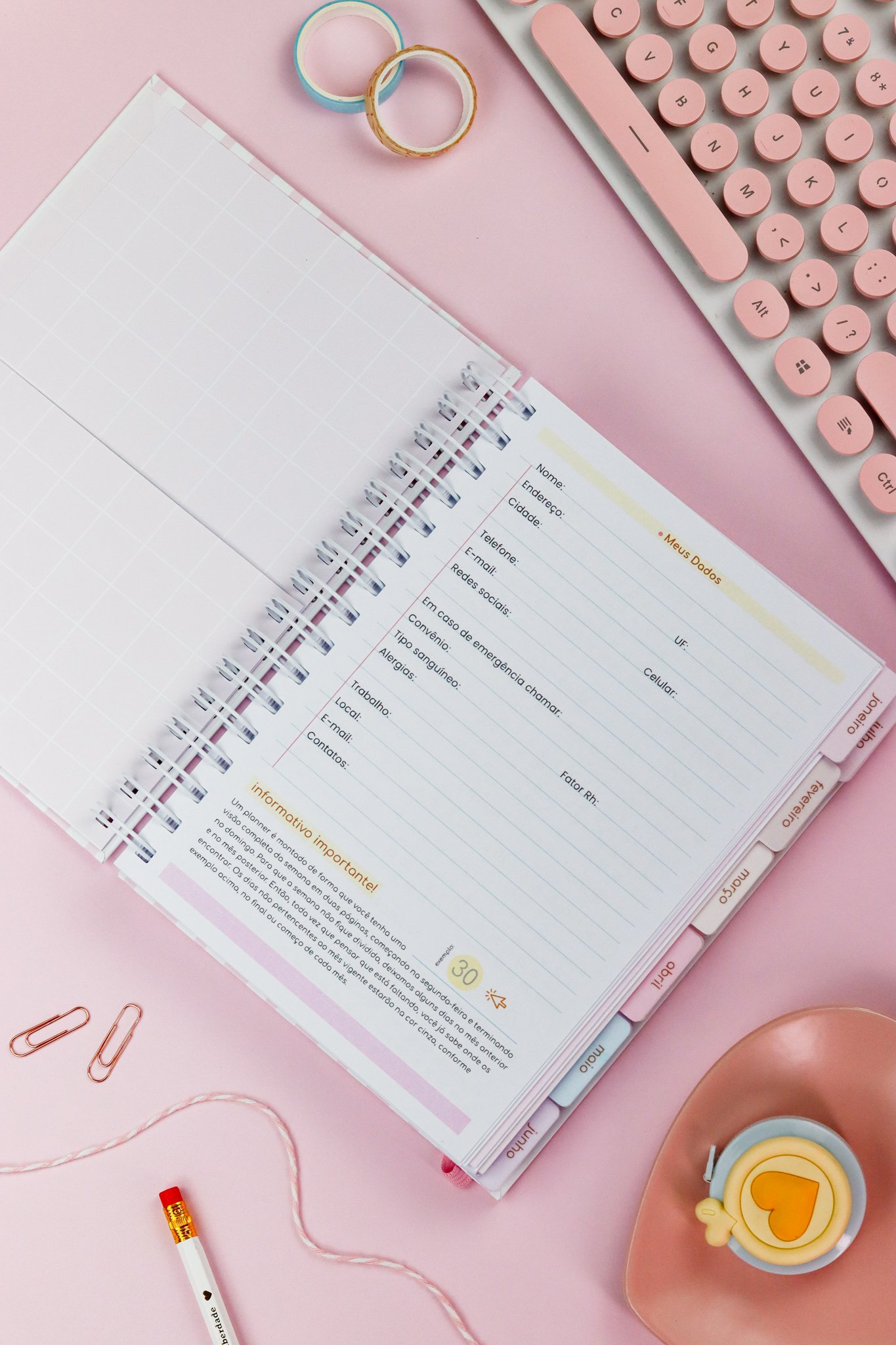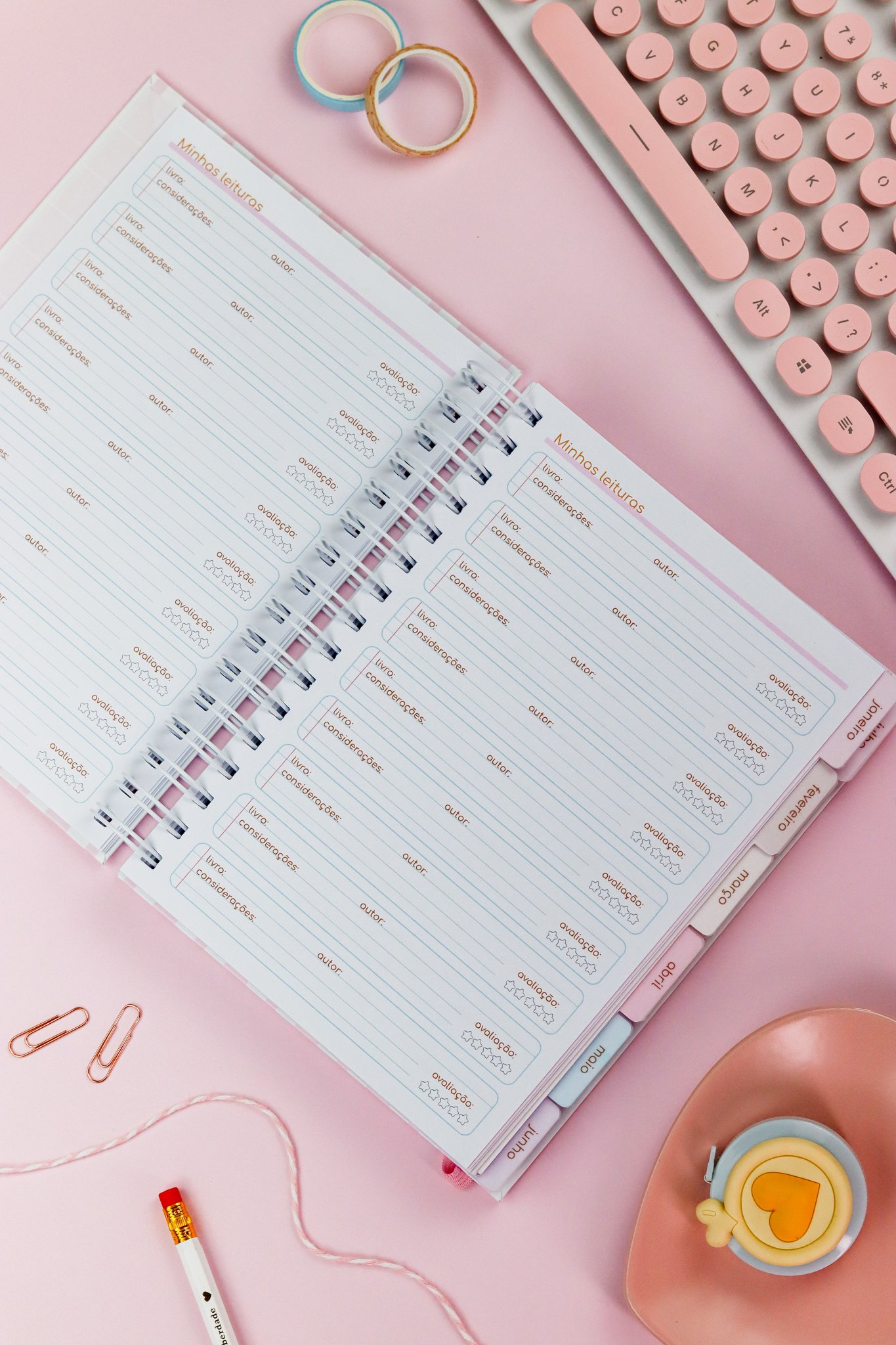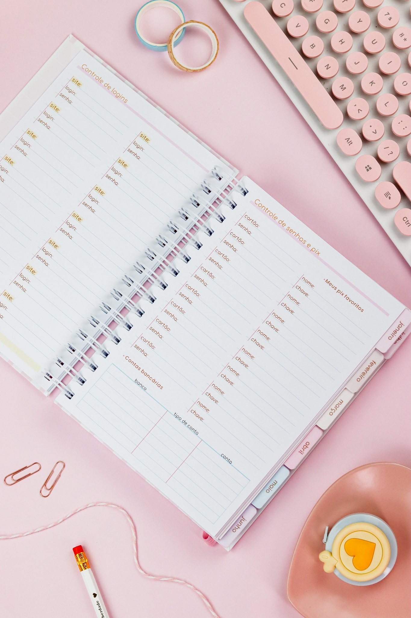 Ah, e ainda tem controle menstrual (com e sem ciclo), checklist, aniversariantes, lista de séries e livros… é aquele planner que acompanha você o ano inteiro, te ajudando a não esquecer nada e a enxergar suas metas com clareza.